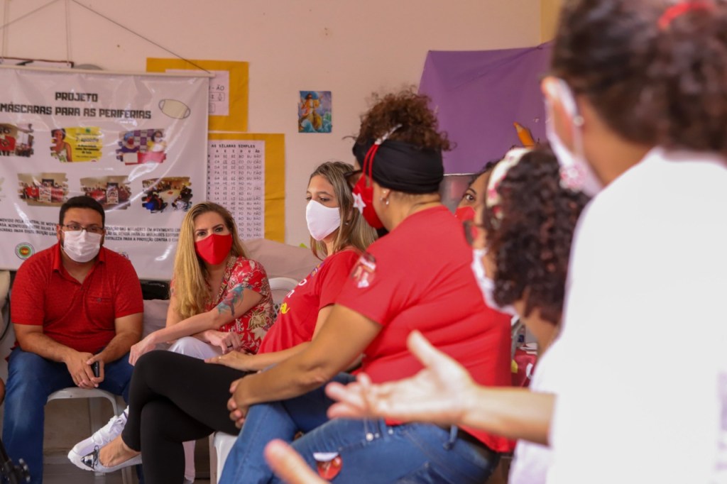 Luizianne Lins, candidata do PT à Prefeitura de Fortaleza, esteve na manhã desta quinta (15/10), na Associação de Mulheres do Conjunto Palmeiras, para conhecer os projetos e a realidade das moradoras, artesãs e mulheres empreendedoras da comunidade, especialmente neste momento de pandemia.
