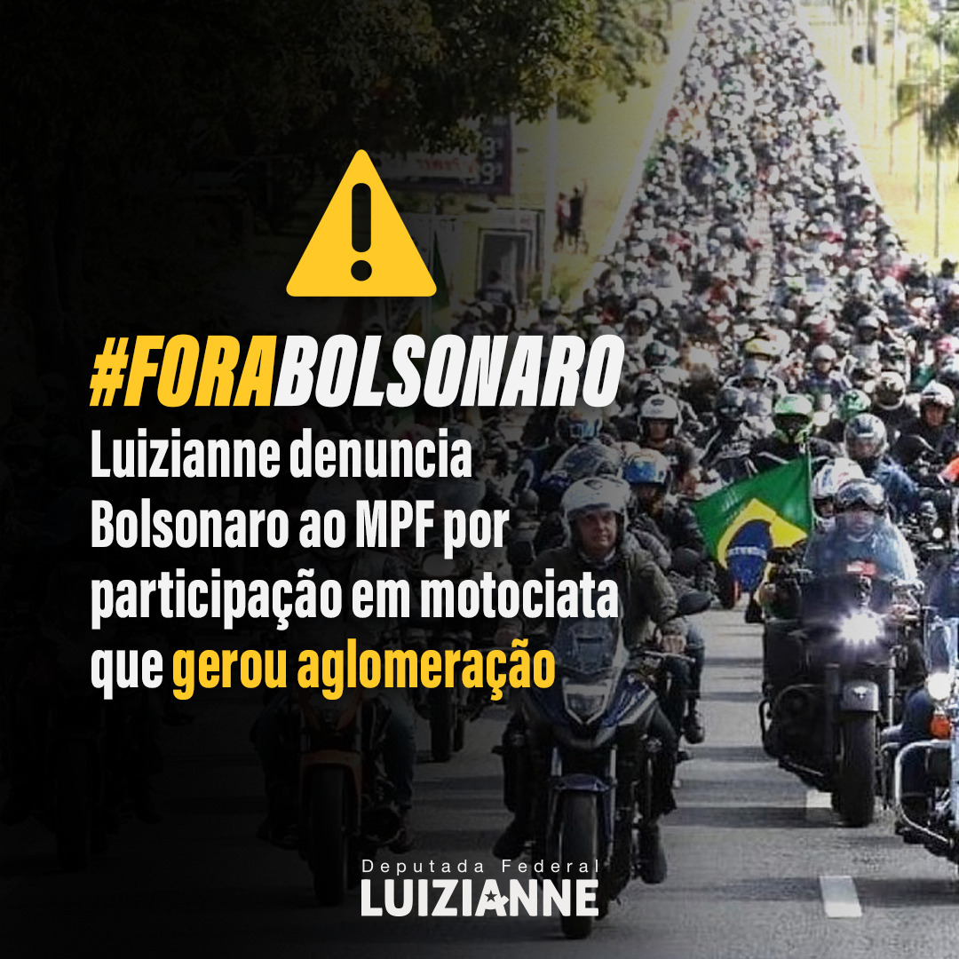 A deputada federal Luizianne Lins (PT/CE) enviou ao Ministério Público Federal (MPF), na pessoa do procurador-geral da República, Augusto Aras, denúncia e pedido de providências com relação à motociata realizada por Jair Bolsonaro, por motivos eminentemente pessoais, no Rio de Janeiro, no último dia 23/05. Luizianne denuncia que houve ato de improbidade administrativa e malversação do dinheiro público, e requer que sejam tomadas as medidas judiciais necessárias para a apuração dos fatos, visando à condenação do denunciado e o ressarcimento dos valores gastos aos cofres públicos.