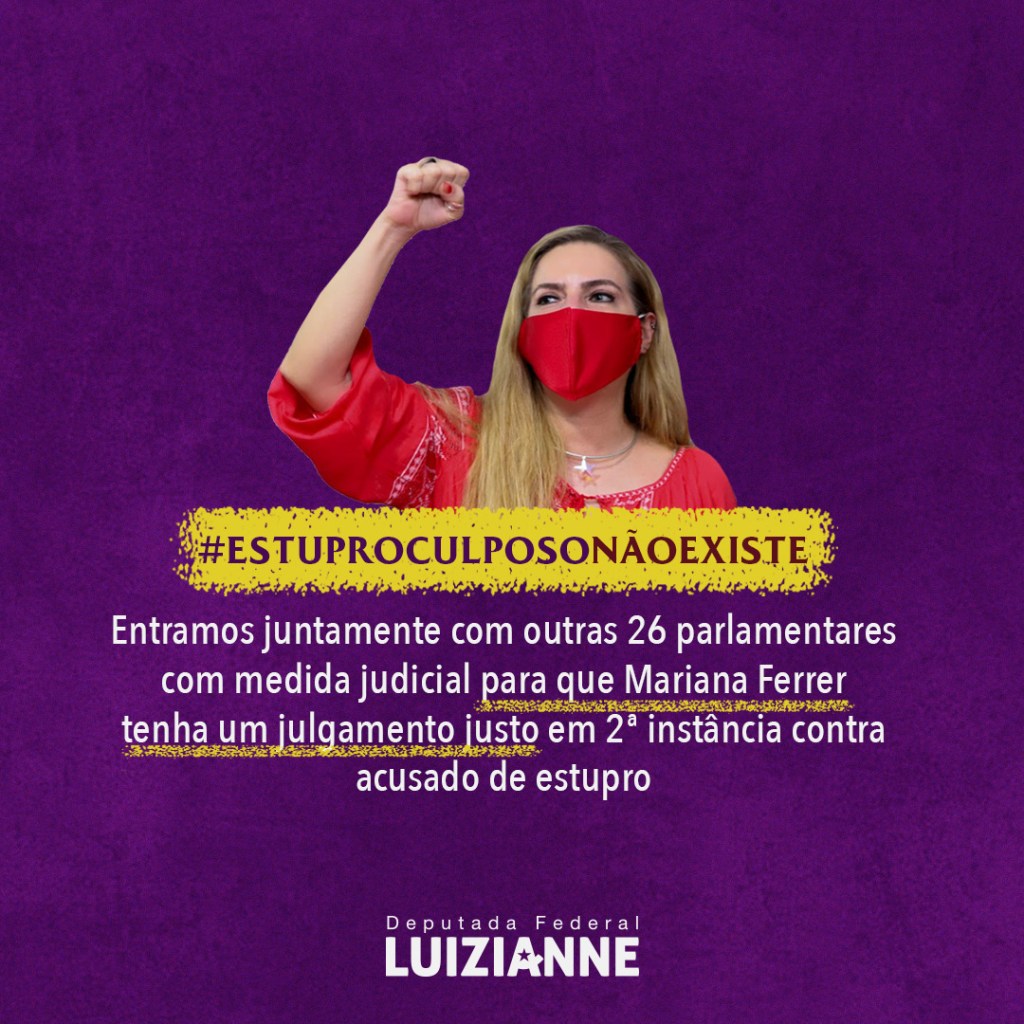 A deputada Luizianne Lins (PT/CE) e mais 28 parlamentares (27 deputadas e uma senadora) apresentaram um pedido ao Tribunal de Justiça de Santa Catarina para ingressarem como “amigas da corte” (amicus curiae) no caso da influenciadora digital Mariana Ferrer. O Ministério Público acusa o empresário André de Camargo Aranha de estupro de Mariana. Ela ainda foi vítima de violência institucional com a exposição de vídeos de seu julgamento em primeira instância. O acusado foi absolvido sob alegação de “estupro culposo”.