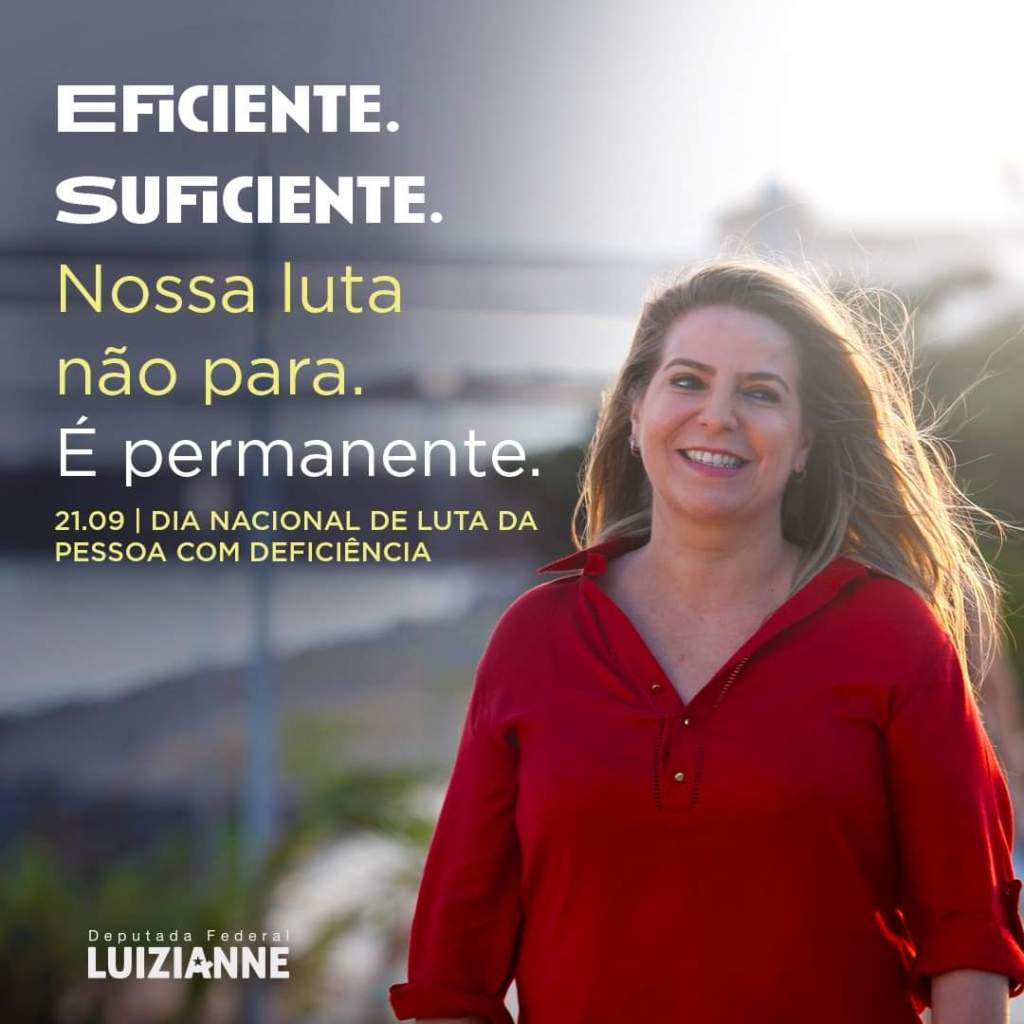 A deputada federal Luizianne Lins (PT/CE) destacou a importância do 21 de setembro, Dia Nacional de Luta da Pessoa com Deficiência, chamando ao compromisso com a inclusão. “Uma sociedade inclusiva envolve todo o seu povo, sem discriminação ou preconceito e prioriza aqueles e aquelas que mais precisam”.