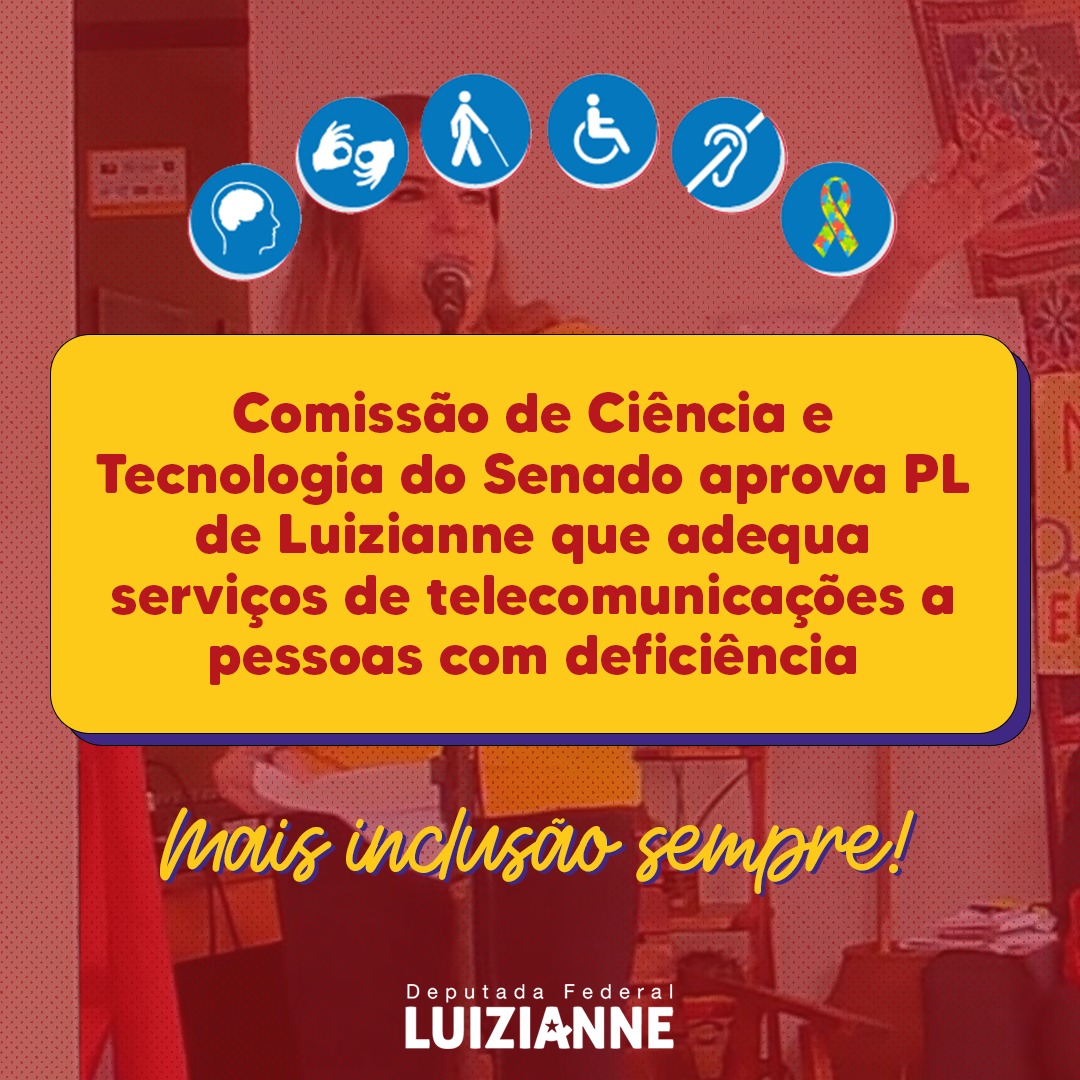 O Projeto de Lei (PL) nº 4486/2019 (nº 7290/2017 na Câmara), da deputada federal Luizianne Lins (PT/CE), foi aprovado pela Comissão de Ciência e Tecnologia (CCT) do Senado. A proposta amplia as condições de universalização dos serviços de telecomunicações às pessoas com deficiência. As operadoras de telecomunicações ficarão, portanto, obrigadas a oferecer atendimento especializado e prioritário para este segmento da sociedade.