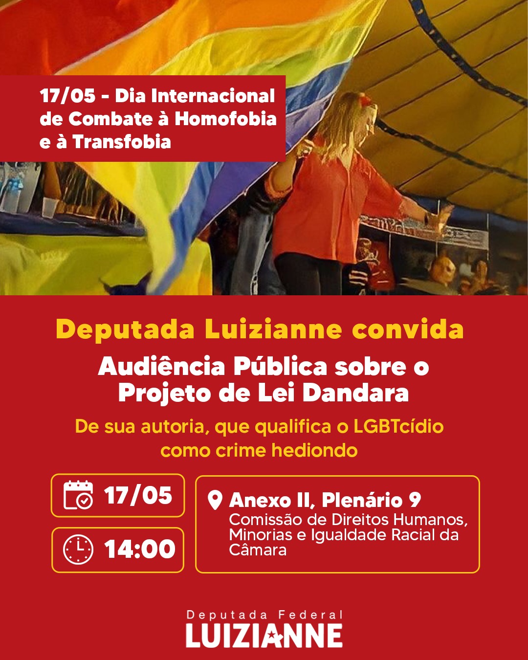 população LGBTQIA+ no mundo”, lamenta a deputada Luizianne Lins (PT/CE), autora do projeto e do requerimento para realização do debate.