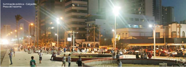 Outra importante frente de ação da política de ampla acessibilidade e segurança urbana é a área de iluminação pública, através da qual a Prefeitura de Fortaleza também vem contribuindo decisivamente para melhorar o nível de segurança e conforto dos cidadãos e visitantes de nossa cidade. Entre 2005 e 2010, investimos mais de 406 milhões em obras de iluminação pública em diferentes pontos da cidade, tendo como resultantes cerca de 8 mil obras de iluminação. Entre as mais relevantes, vale destacar a requalificação do Polo do Centro, compreendendo o quadrilátero entre a Avenida Tristão Gonçalves, a Avenida Duque de Caxias, a Avenida Dom Manuel e a Avenida Castelo Branco, onde foram substituídos braços de luminárias por um padrão específico para a área, com luminárias mais eficientes e potência de acordo com o estudo luminotécnico do local; e com lâmpadas de vapor metálico, que dão maior nitidez às cores.