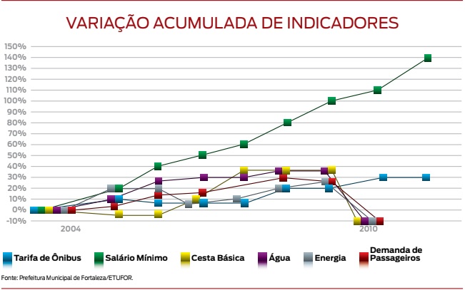 Para avaliar a amplitude dos efeitos positivos da política de tarifa desonerada da gestão de Luizianne Lins, foi feita uma projeção a partir de vários indicadores de custo de vida da população trabalhadora.
