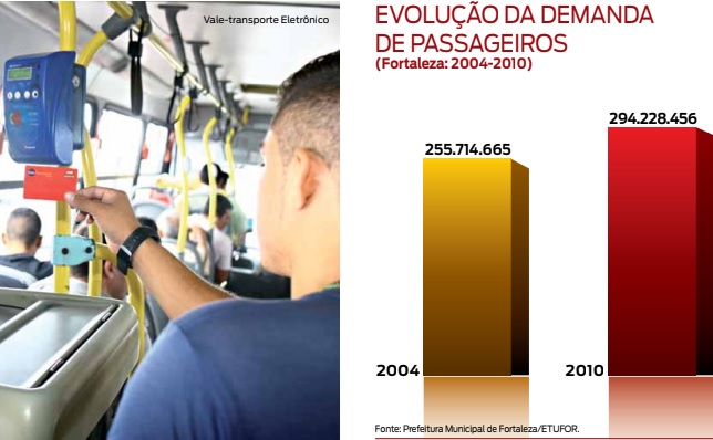 A evolução da demanda de passageiros pagantes está diretamente relacionada ao menor custo da passagem do transporte público regular, conforme mostra o gráfico acima: em termos absolutos, o incremento da demanda de passageiros no transporte coletivo foi de 38.513.791 entre os anos de 2004 e 2010. Contudo, se a ampliação do volume de passageiros pagantes cresceu cerca de 15% ao incluir todos os beneficiários de gratuidade, o volume total de passageiros cresceu cerca de 20% no período entre 2004 e 2010.