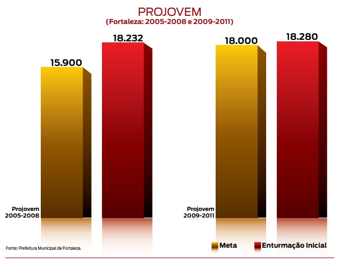 Em 18 meses, os jovens que participam do Projovem recebem uma formação integral e participam de cursos nas áreas de Alimentação, Construção e Reparos, Metalomecânica, Telemática, Turismo e Vestuário. O Instituto Federal de Educação, Ciência e Tecnologia do Ceará (IFCE) e o curso de Economia Doméstica da Universidade Federal do Ceará (UFC) são parceiros do Programa. Quem estiver devidamente matriculado e participar efetivamente das atividades recebe uma bolsa de R$ 100,00 por mês. O Projovem é um programa do Governo Federal, executado pela Prefeitura de Fortaleza, que funciona a partir da extensa rede de educação municipal (119 escolas) e possibilita acesso aos jovens dos 51 bairros mais carentes da capital (com elevados índices de exclusão e violência).
