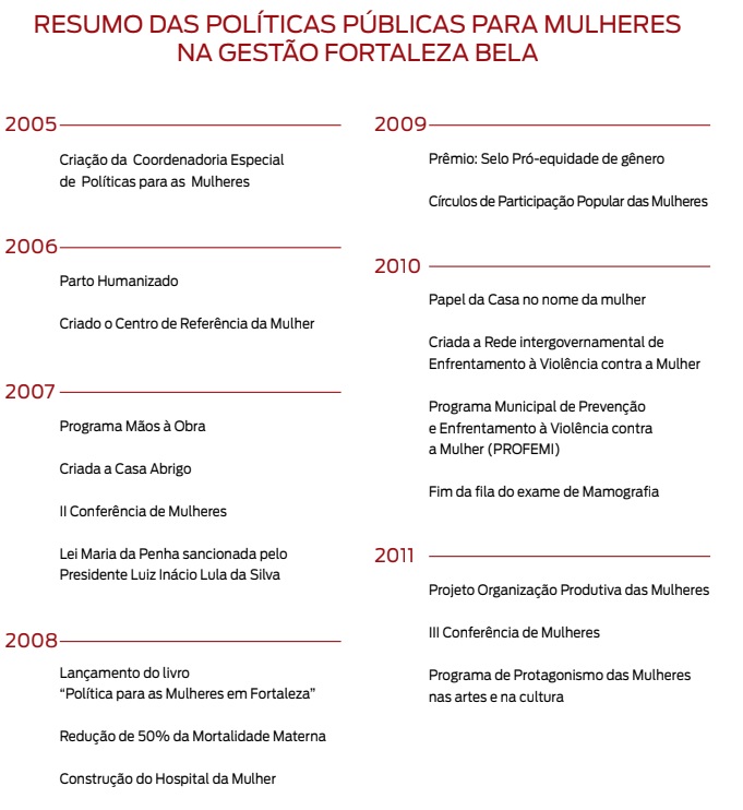 RESUMO DAS POLÍTICAS PÚBLICAS PARA MULHERES NA GESTÃO FORTALEZA BELA