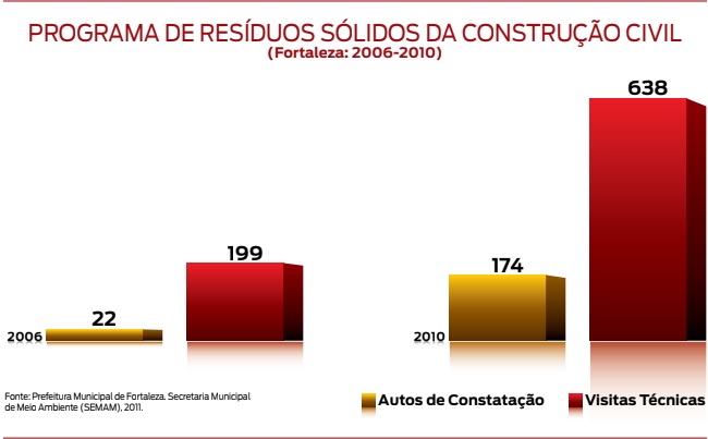 Em 2006, foram feitas 199 visitas técnicas com 22 autos de constatação emitidos. Em 2010, a capacidade reguladora desse programa apresentou notável incremento. Foram realizadas 638 visitas técnicas e 174 autos de constatação. Essa ampliação da ação da SEMAM resultou em aumentos percentuais de 220,60% e 690,91% nas visitas técnicas e autos de constatação respectivamente.