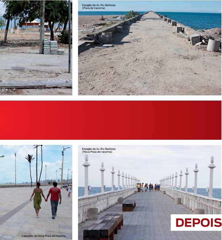 Dentre as obras já entregues estão: reforma e ampliação do calçadão da Praia de Iracema, situado nos trechos das Avenidas Rui Barbosa e Almirante Tamandaré; reforma do Estoril, que compõe o patrimônio histórico e cultural da área, e o espigão da Avenida Rui Barbosa. Outras obras estão em andamento, como a reconstrução da estrutura do Pavilhão Atlântico, o espigão da Rua João Cordeiro, o Centro de Artesanato, a Casa da Lusofonia, o Instituto Cultural Iracema e o Centro de Informações Turísticas. Será executada também a engorda da Praia de Iracema no trecho compreendido entre a Ponte dos Ingleses (Ponte Metálica) até o espigão da Rua João Cordeiro. As mais de vinte intervenções nos 3 km da Praia de Iracema requalificarão a área para quem nela mora e para o turismo.
