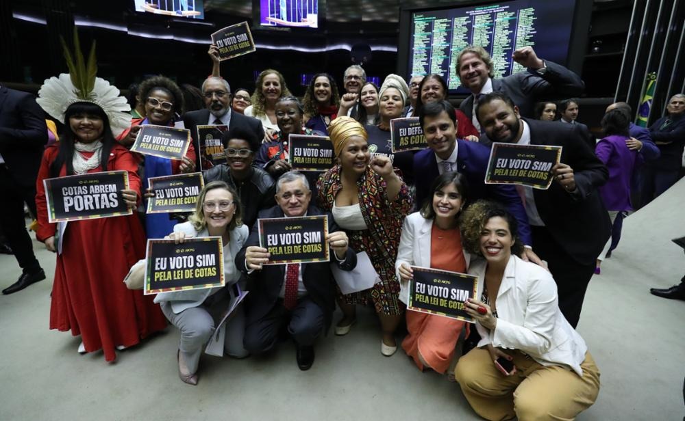 Com o voto favorável da Bancada do PT foi aprovado na noite desta quarta-feira (9) o projeto de lei (PL 5384/2020), de autoria da deputada federal Maria do Rosário (PT-RS), com coautoria da deputada federal Luizianne Lins (PT/CE), presidente da Comissão de Direitos Humanos, Minorias e Igualdade Racial da Câmara, e outros, que garante a continuidade e aperfeiçoamento da Lei de Cotas no ensino federal. “Estamos aqui construindo justiça social e dignidade humana através do direito à educação”. Aprovamos a cota como direito de igualdade de oportunidade, afirmou a deputada. A ministra da Igualdade Racial, Anielle Franco, acompanhou a votação do projeto no plenário da Câmara.