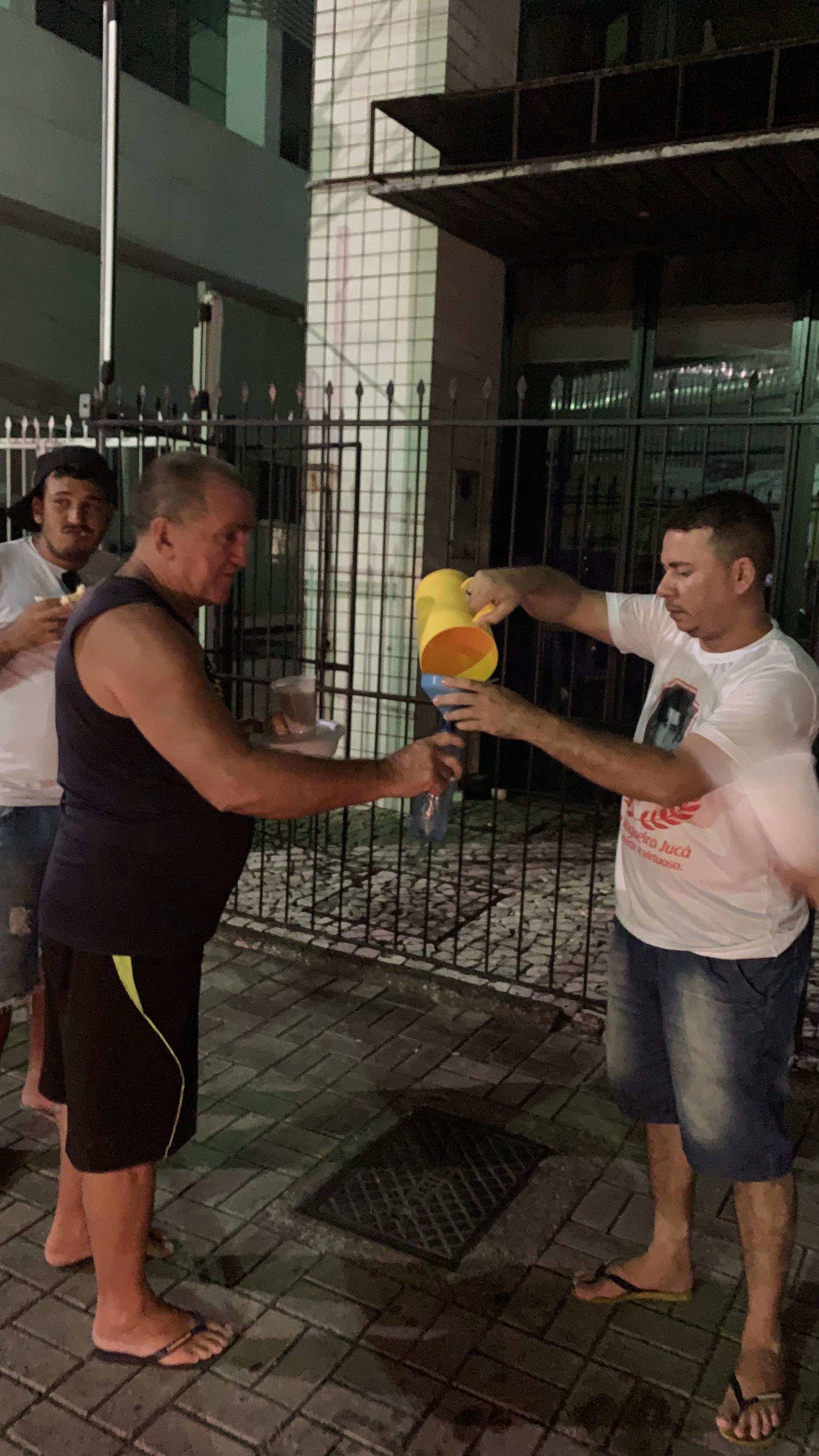 Na noite de quarta-feira, o assessor Geilson Cajuí acompanhou mais uma ação do grupo Sopão Solidário, em parceria com o Comitê Estudante João Nogueira Jucá, que distribuiu sopão, pães, água e roupas para pessoas em situação de rua no Centro de Fortaleza.