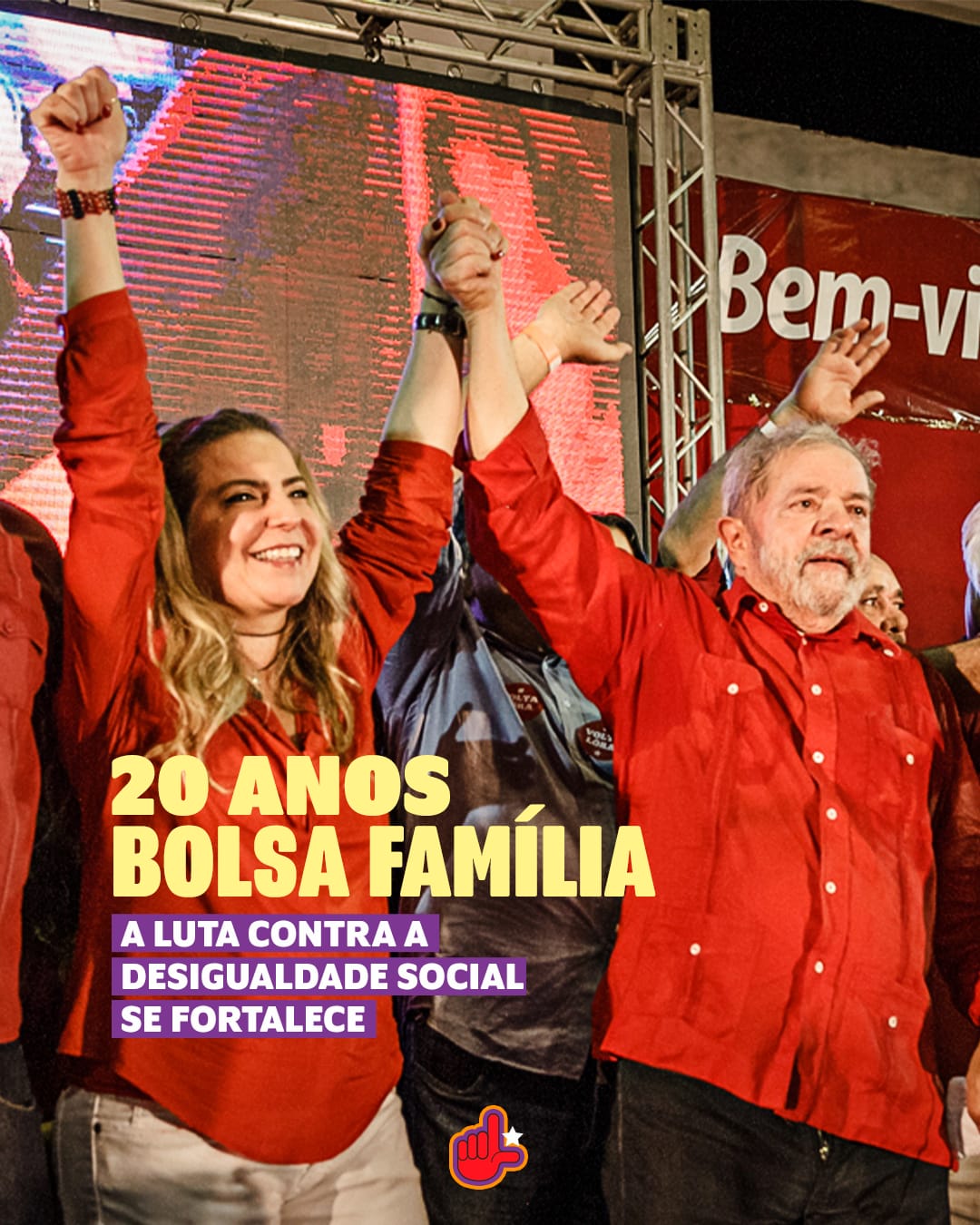 A deputada federal Luizianne Lins (PT/CE), presidente da Comissão de Direitos Humanos, Minorias e Igualdade Racial da Câmara, destacou em suas redes sociais da Internet os 20 anos de criação do Bolsa Família pelo governo do presidente Luiz Inácio Lula da Silva. Segundo ela, em outubro de 2003, começava o mais bem sucedido programa de combate à fome da história do Brasil. “Como prefeita de Fortaleza, pude acompanhar de perto a diferença que o programa fez na vida do nosso povo. 20 anos depois, o presidente Lula está de volta, mais uma vez, para tirar o Brasil do Mapa da Fome. Nossos sonhos não envelheceram de lá pra cá, a luta por uma cidade e um país mais justo continua viva e urgente”, afirma Luizianne