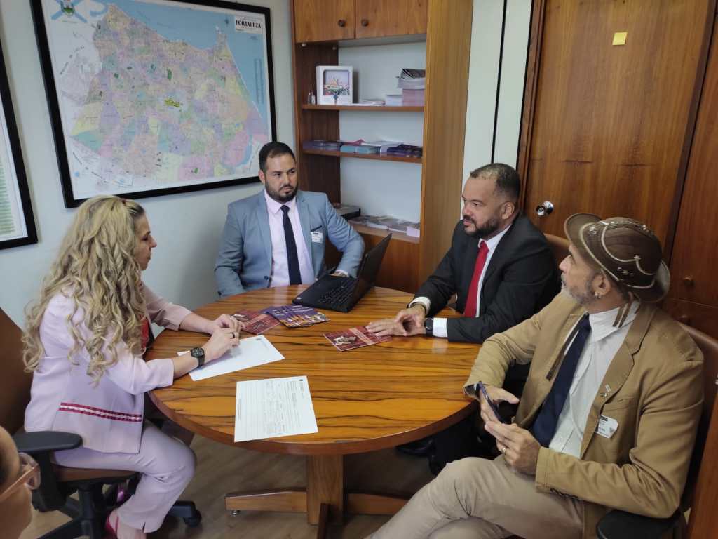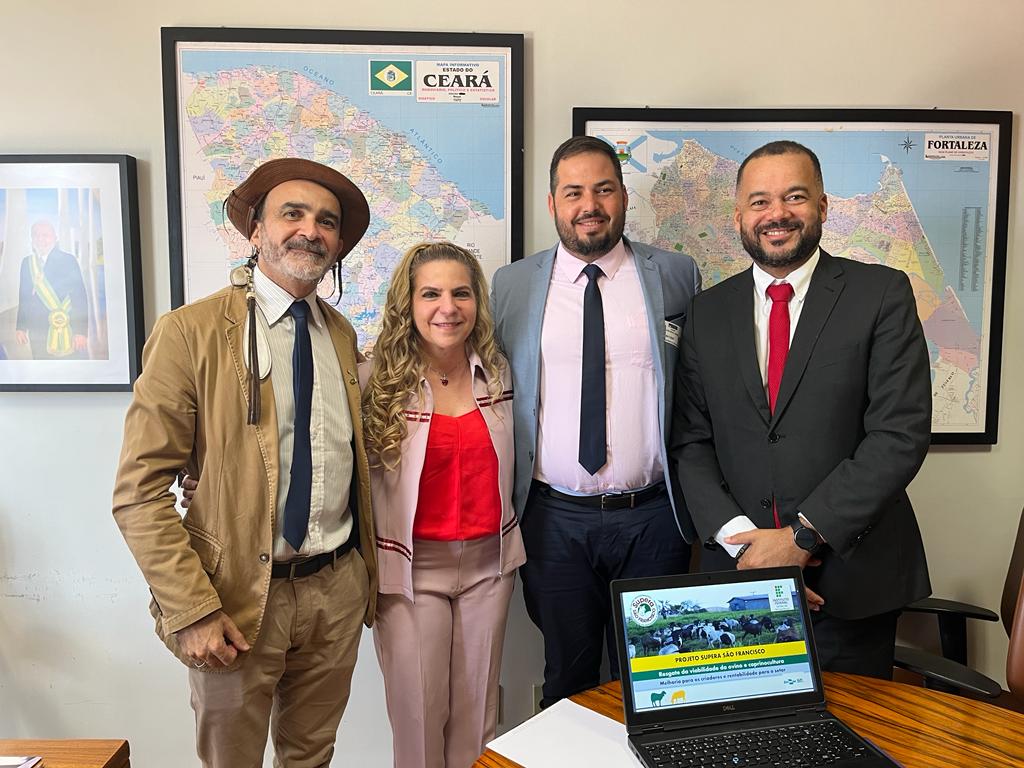 Reunião os pró-reitores do Instituto Federal do Sertão de Pernambuco Vítor Lorenzo e Jean Carlos e com Cleber Ávila, da Sociedade Brasileira de Medicina Veterinária. Na pauta: apresentação de projetos para o sertão do Ceará a partir das experiências do IFSertãoPE para controle integrado de verminoses em rebanhos de ovinos e caprinos.
