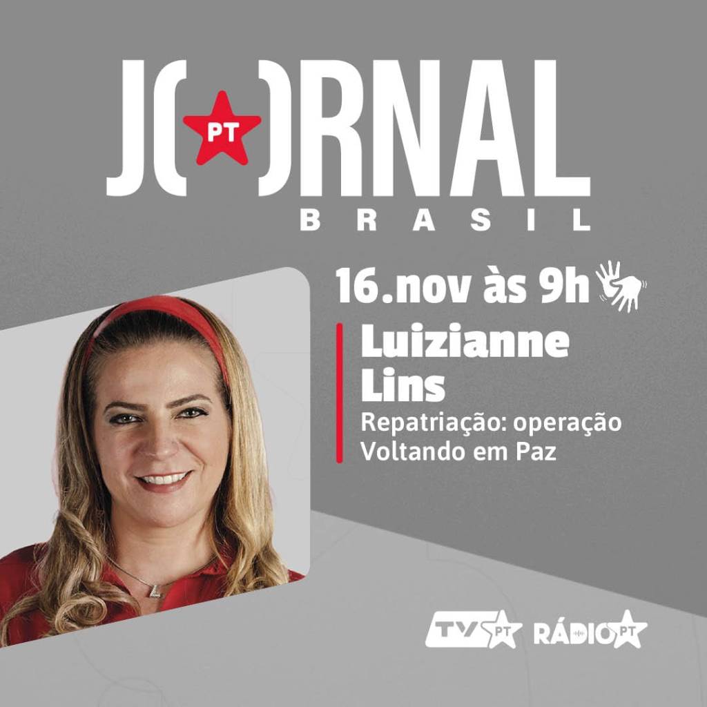 Na última quinta-feira, 16/11, a deputada federal Luizianne Lins (PT/CE), presidente da Comissão de Direitos Humanos, Minorias e Igualdade Racial da Câmara, participou do Jornal PT Brasil, veiculado no canal do PT Brasil no YouTube, para comentar a Operação Voltando em Paz, montada pelo governo brasileiro para repatriar seus cidadãos e cidadãs da zona de conflito entre Israel e Hamas.