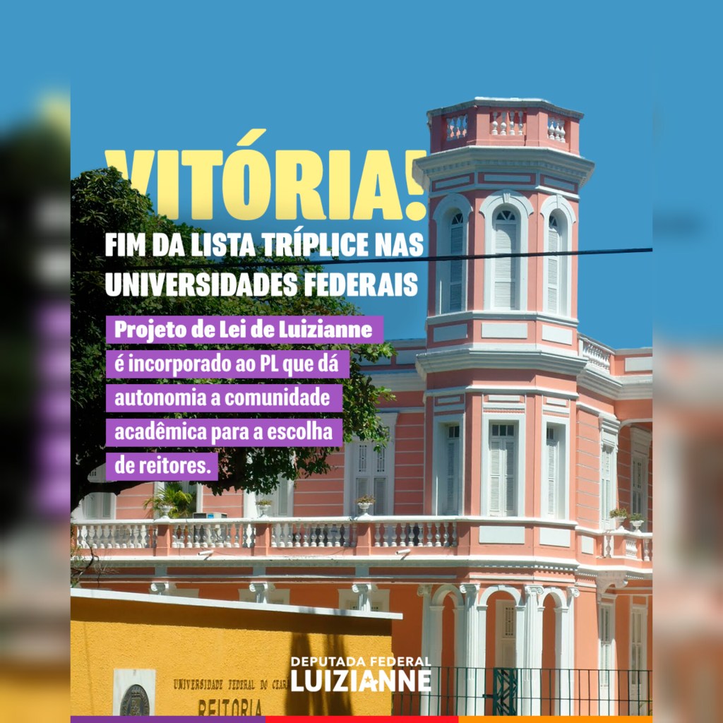 “É muito justo que a vontade da comunidade acadêmica seja respeitada na nomeação de reitores e vice-reitores, em especial, para evitar o aconteceu no desgoverno Bolsonaro, que nomeou interventores para as universidades e institutos federais”, assinala Luizianne.