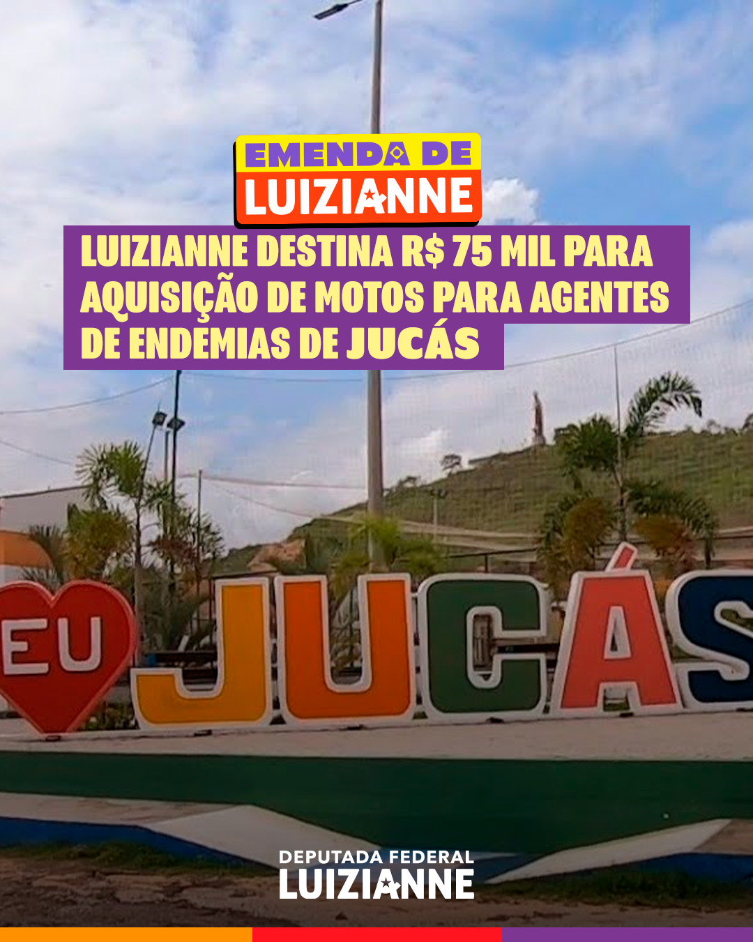 Luizianne também destinou emenda parlamentar para a aquisição de motocicletas que melhorarão o atendimento dos agentes de endemias de Jucás: