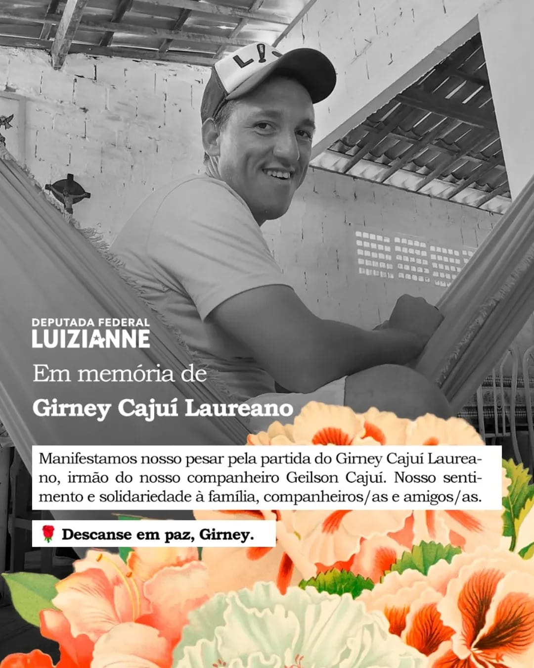 Luizianne também divulgou nota de pesar pelo falecimento de Girney Cajuí Laureano, irmão do assessor do mandato Geilson Cajuí.