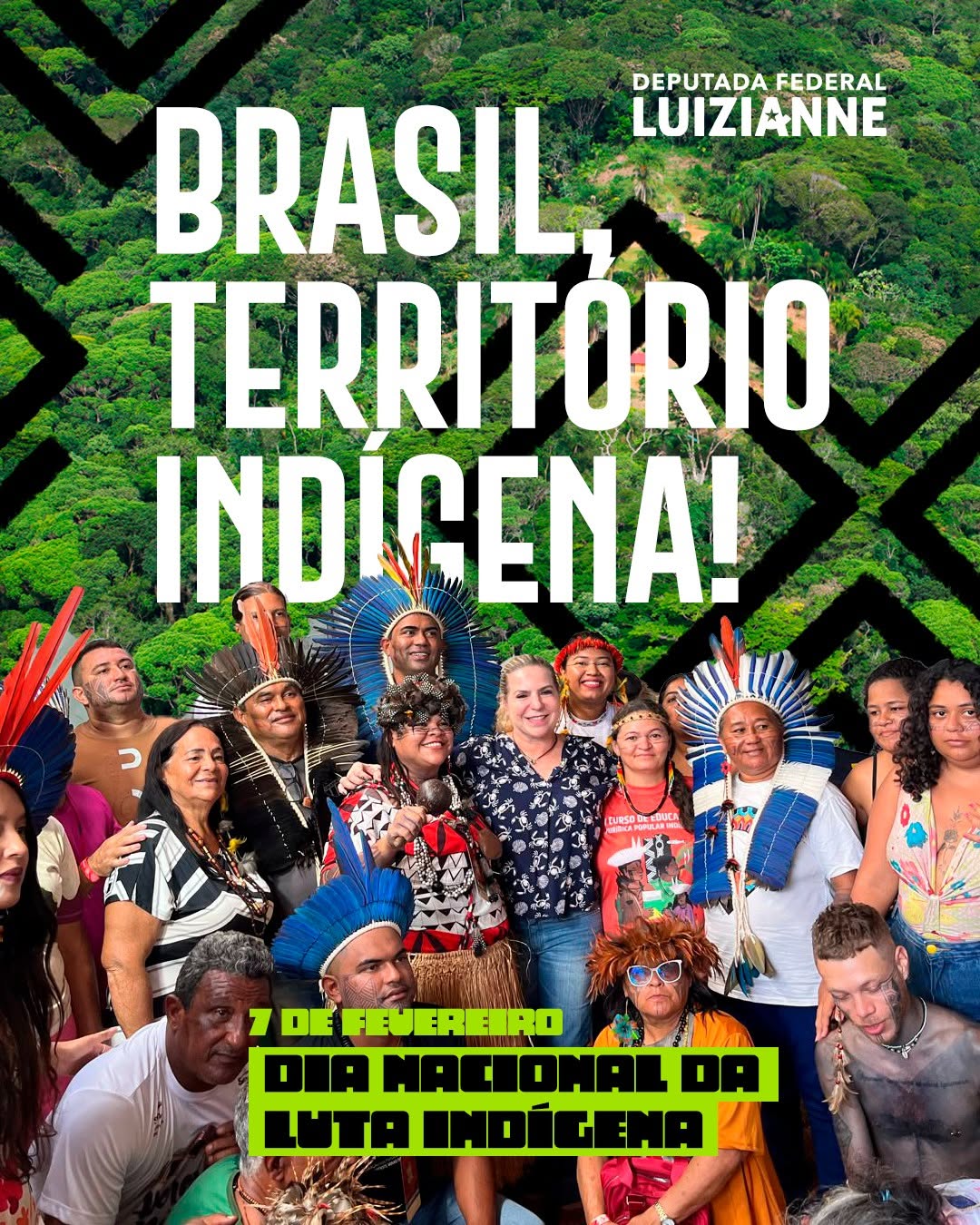 A deputada federal Luizianne Lins (PT/CE) destacou, em suas redes sociais da Internet, o Dia Nacional da Luta Indígena, em 07 de fevereiro, e reforçou seu compromisso com as causas do movimento dos povos originários do Brasil.