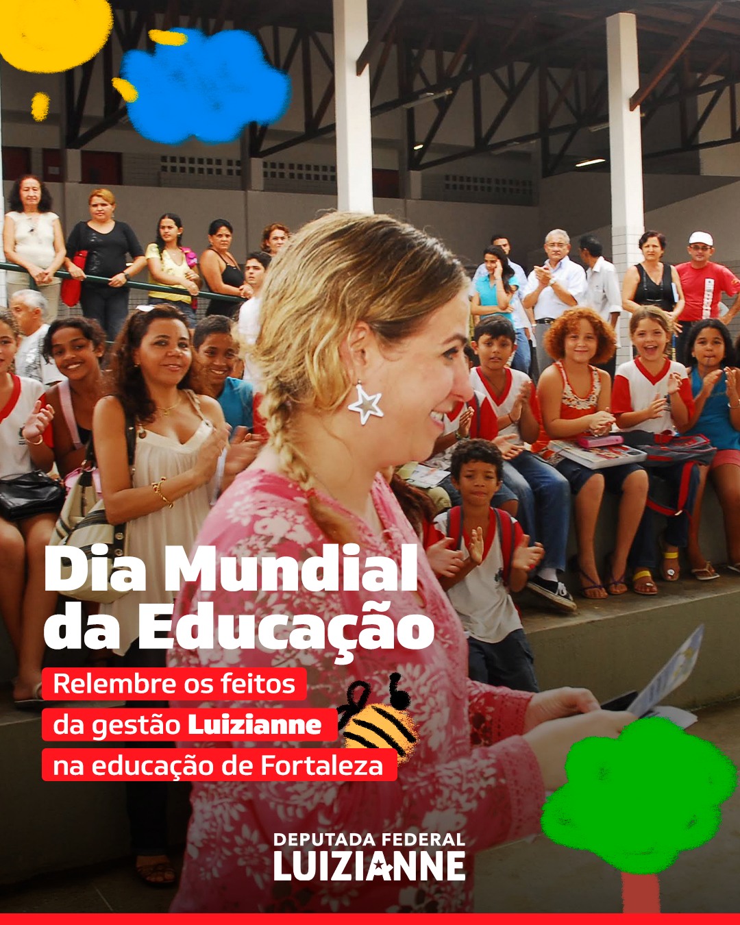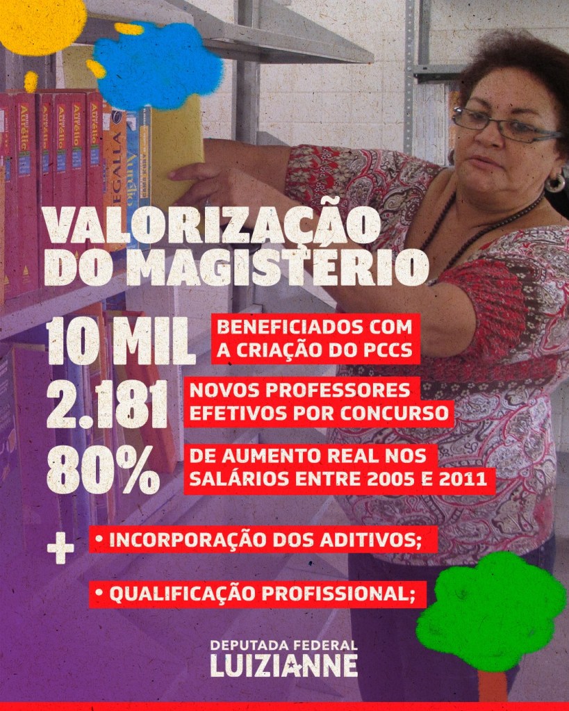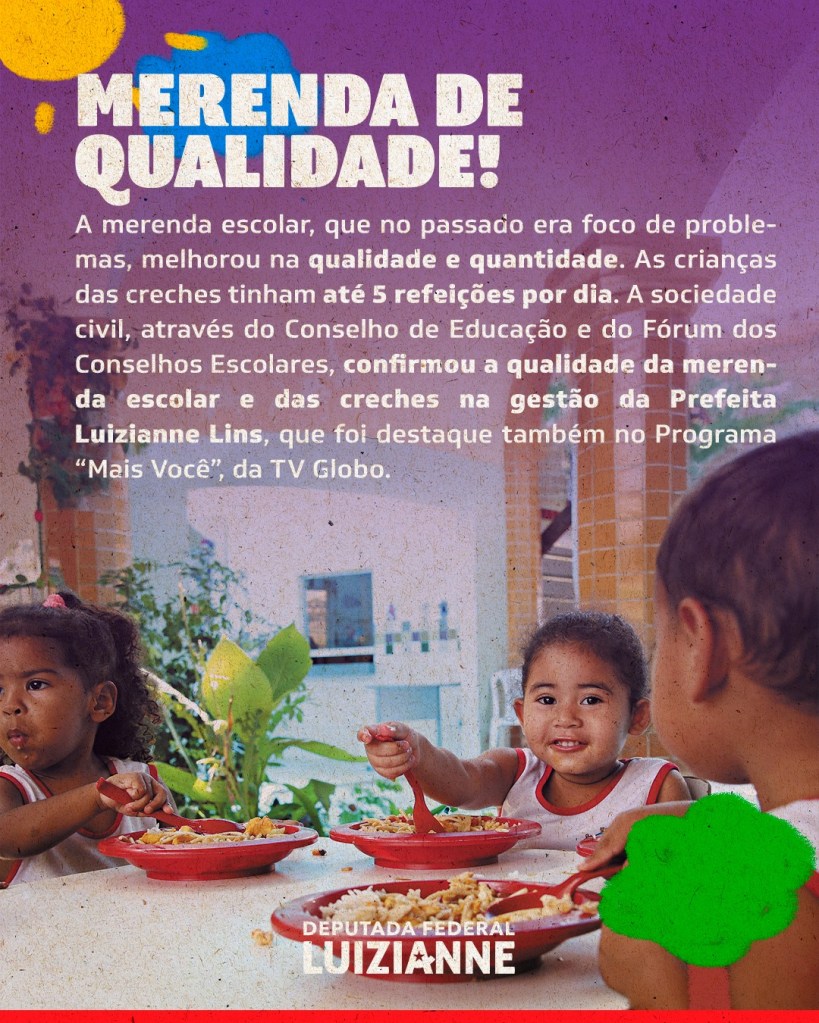 No Dia Internacional da Educação, 28/04, a deputada federal e ex-prefeita de Fortaleza, Luizianne Lins (PT/CE), relembrou, em suas redes sociais da Internet, os feitos históricos da gestão Fortaleza Bela na área da educação na capital cearense. “Nosso governo promoveu uma verdadeira revolução na educação da capital, com um salto na quantidade de escolas e na qualidade das estruturas das mesmas, fardamento completo e merenda de qualidade para as crianças, valorização de profissionais e mais que o dobro de investimentos da gestão anterior”, destacou a parlamentar. Confira: