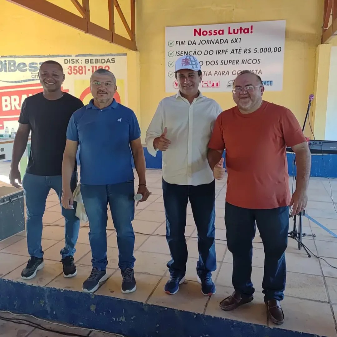 10. Roberto Gomes participou do ato do 1° de Maio em Iguatu e visitou a sede social do Sindicato dos Comerciários e Comerciárias do município com os companheiros Francimar, Gouveia e Claudemir Brito, da Federação dos Trabalhadores e Trabalhadoras do Comércio no Ceará (Fetrace).