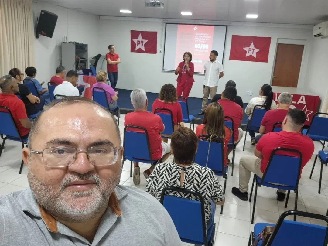 14. Roberto Gomes esteve presente na plenária de debate e organização da candidatura da companheira Íris Tavares à presidência do PT de Juazeiro do Norte.