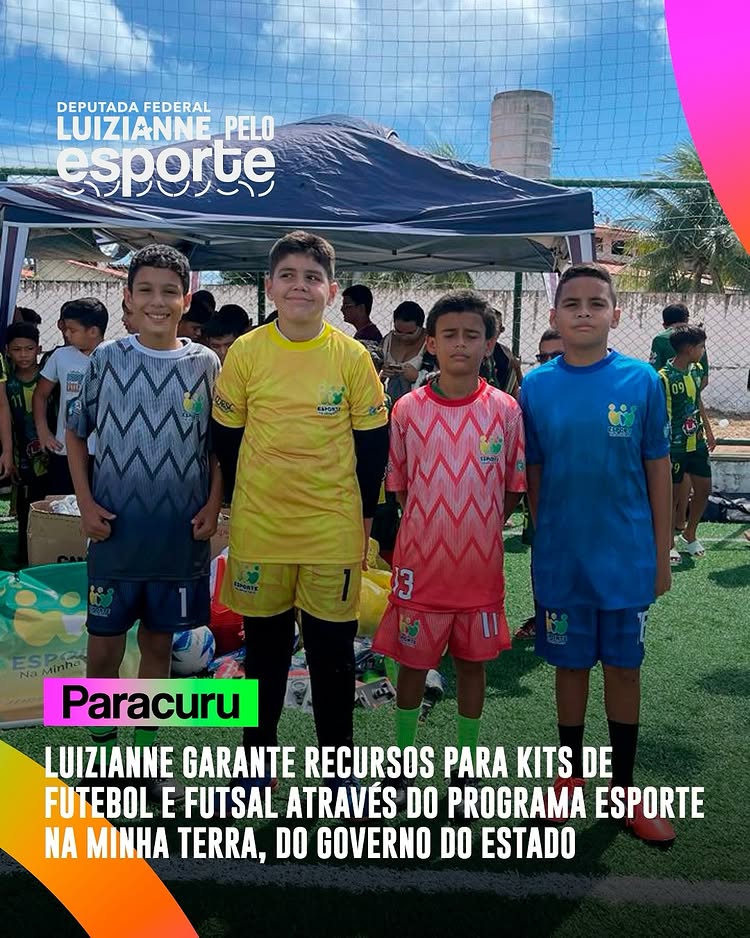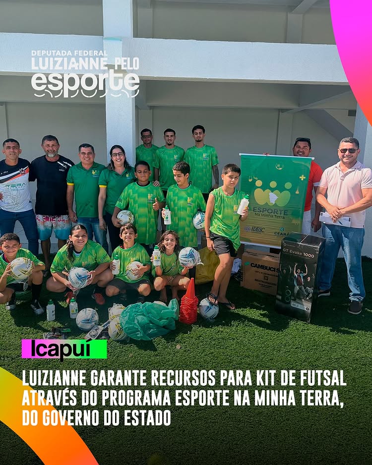 Recursos assegurados pela deputada federal Luizianne Lins (PT/CE) garantem a entrega de mais kitsde futebol de campo e futsal na cidades de Paracuru, Icapuí, Sobral e Jaguaretama (segunda remessa de kits). Os kits são do programa Esporte na Minha Terra, do Governo do Estado, com recursos articulados pela deputada Luizianne.