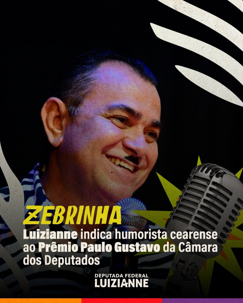 Natural de Massapê (CE), Zebrinha construiu uma carreira marcada pela inovação e resistência cultural, sendo fundador do Museu do Humor Cearense e diretor do Teatro Chico Anysio, além de idealizador de datas emblemáticas como o Dia Nacional do Humorista. A indicação de Luizianne Lins reforça o reconhecimento à importância do humor como expressão artística e instrumento de transformação social, valores profundamente representados pela obra e pela trajetória de Zebrinha.