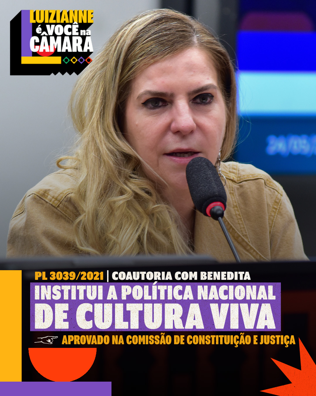 A Comissão de Constituição e Justiça (CCJ) da Câmara dos Deputados aprovou o PL 3039/2021, de autoria da deputada federal Benedita da Silva (PT/RJ|) e coautoria da deputada Luizianne Lins (PT/CE). A proposta permite a habilitação de escolas públicas como pontos de cultura dentro da Política Nacional de Cultura Viva.