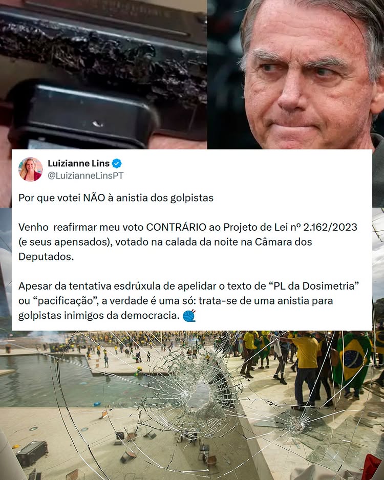 A deputada federal Luizianne Lins (PT/CE) votou contra o projeto de Lei nº 2.162/2023, votado na calada da noite na Câmara dos Deputados. “Apesar da tentativa esdrúxula de apelidar o texto de “PL da Dosimetria” ou “pacificação”, a verdade é uma só: trata-se de uma anistia para golpistas inimigos da democracia”, assinalou a parlamentar em suas redes sociais da Internet.